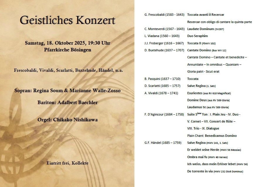 18 October Bösingen (CH), Katholische Kirche Bösingen, Concert of Organ